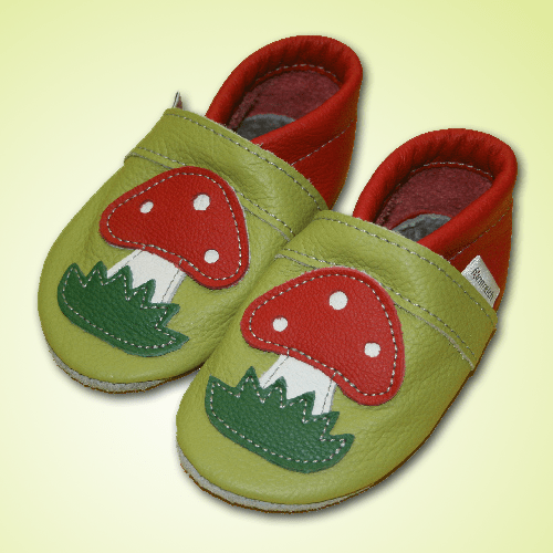 Krabbelschuhe Pilz-Applikation Lemongrün