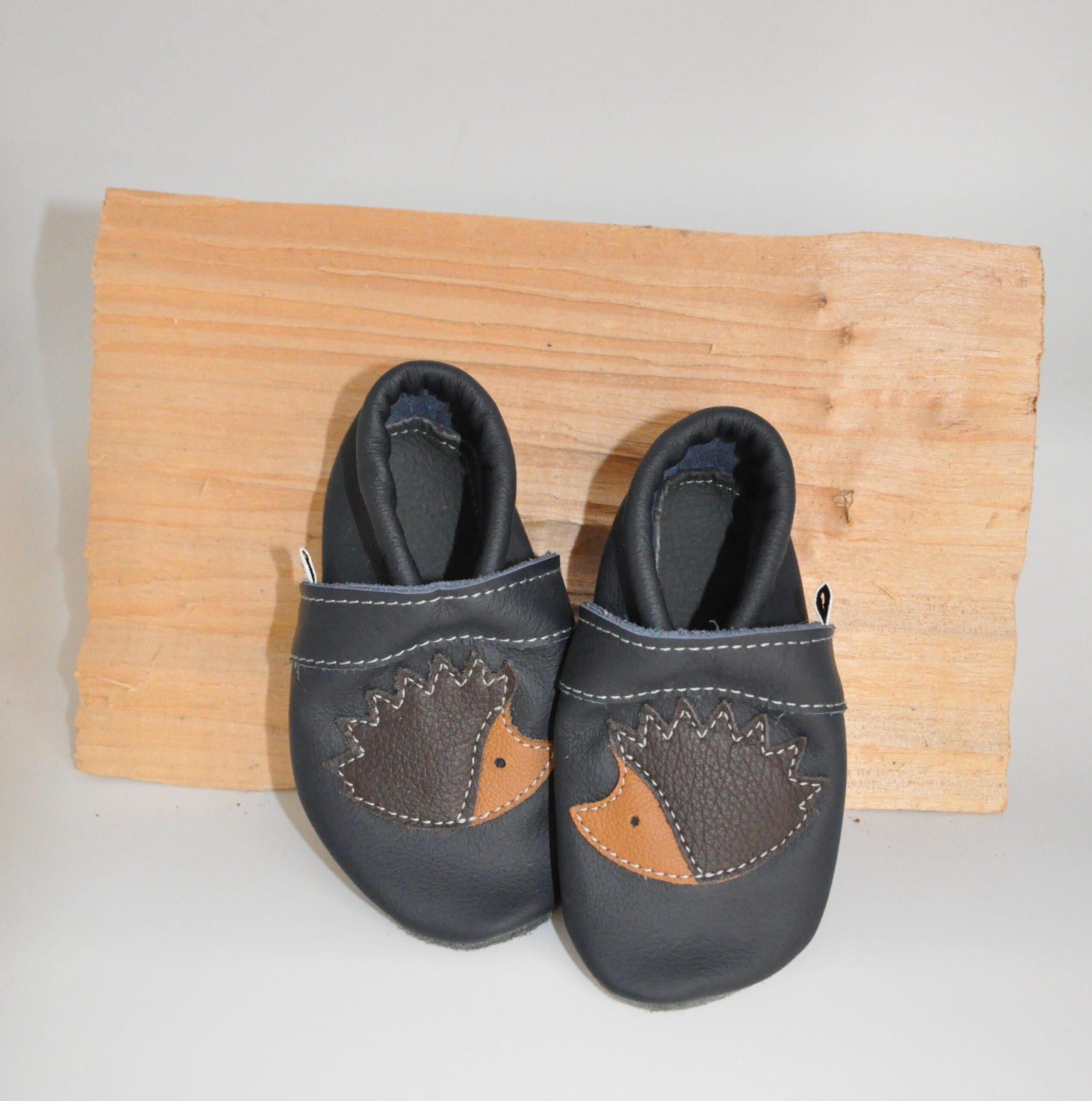 Lederpuschen Marine mit Igel Gr.20/21 – SALE
