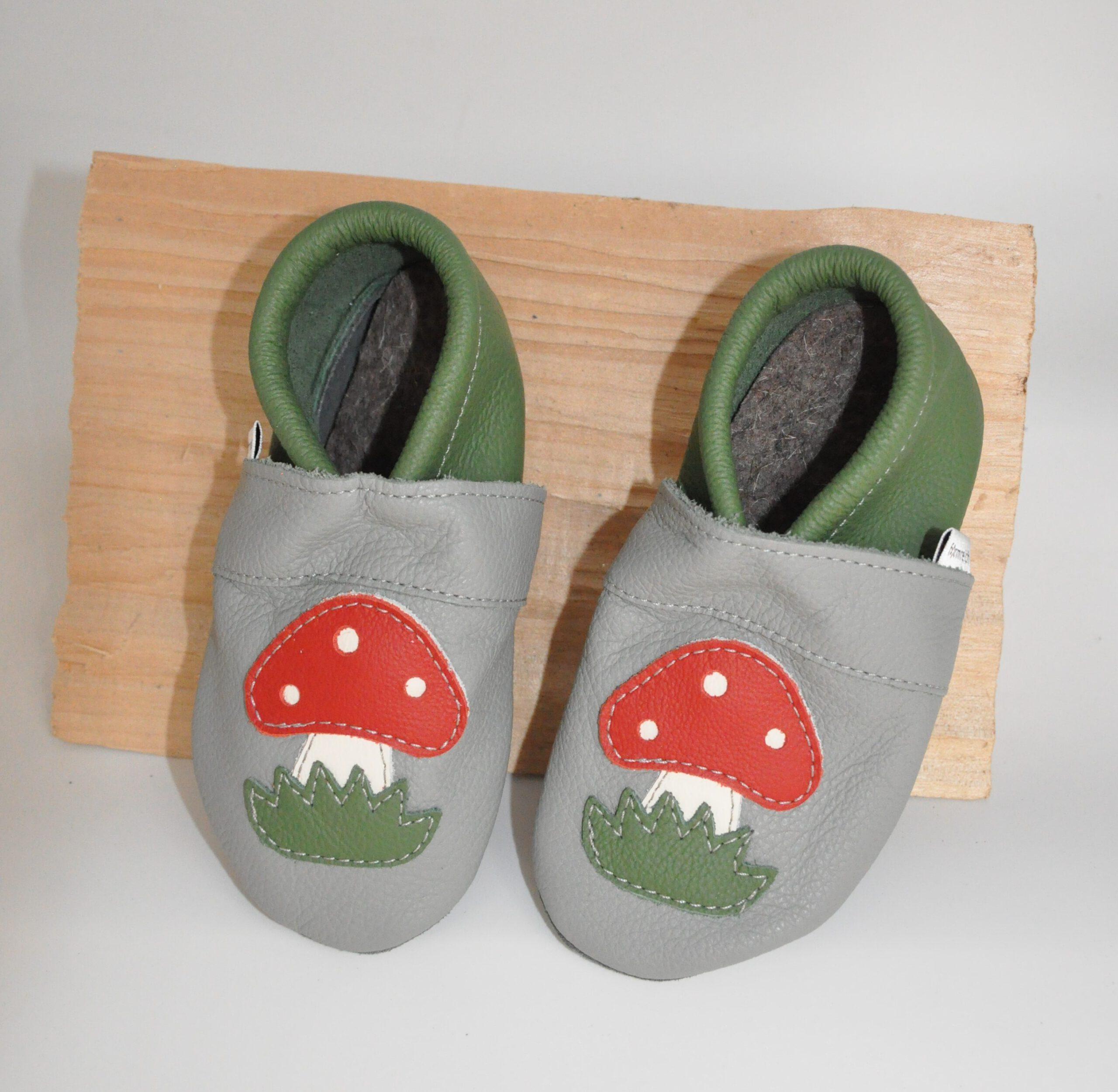 Special offerLederpuschen mit Fliegenpilz Gr.26/27 – SALE